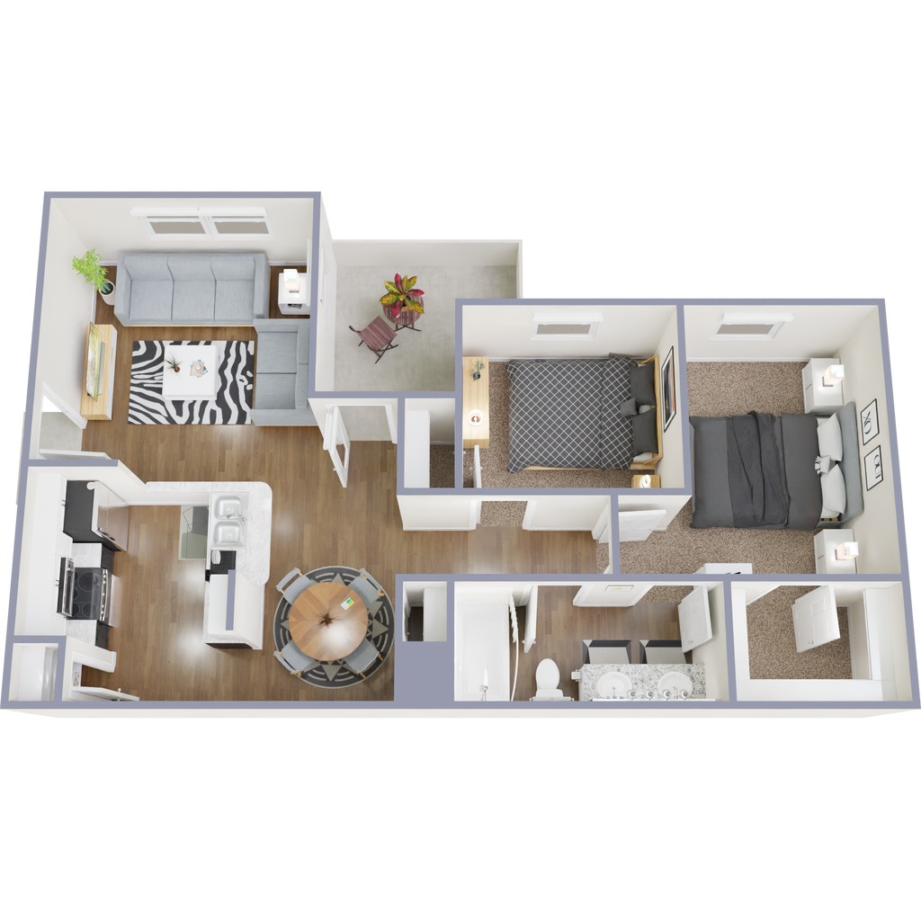 Modelo de apartamento: B2Desde $1,3252 Dormitorios, 1 Baño, 865 sq ftDisponible Ahora![]()