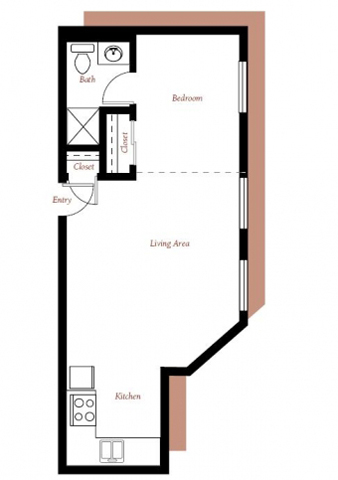 Estudio, 1 Baño, 350-460 pies²Galería del Modelo
