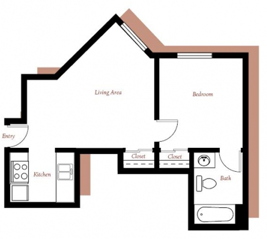 1 Dormitorio, 1 Baño, 390-698 pies²Galería del Modelo