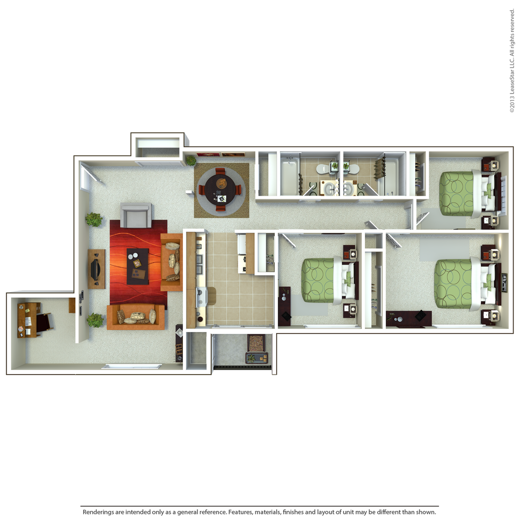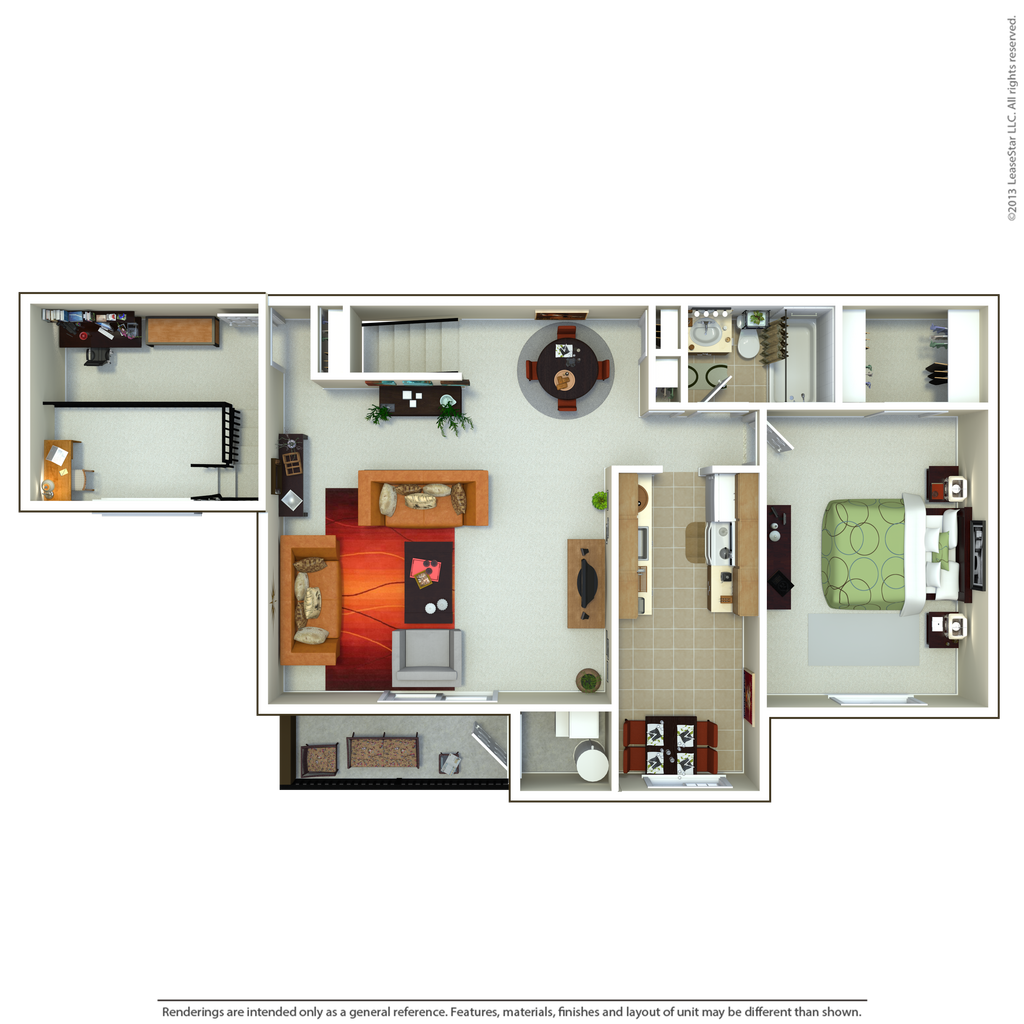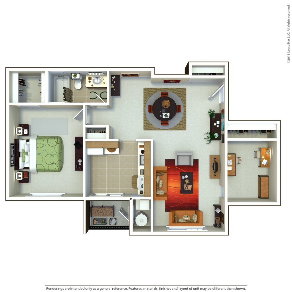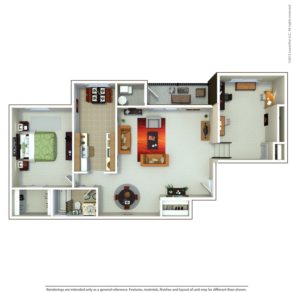 1 Bedroom - Plano 1 Unidad de apartamento: 08Modelo de apartamento: 1 Bedroom1 Dormitorio, 1 Baño, 872 sq ftDisponible Ahora1 Bedroom with Raised Den