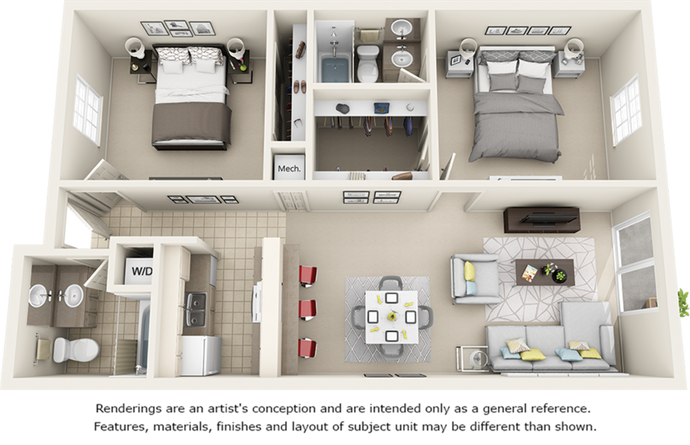 - Plano de planta de concepto abierto con amplias y lujosas suites de dormitorio