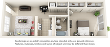 Modelo de apartamento: 1-1Desde $1,4191 Dormitorio, 1 Baño, 560 sq ftDisponible Ahora![]()