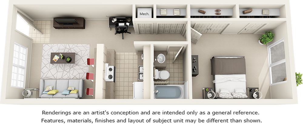 1 Dormitorio, 1 Baño, 560 pies²Disponible AhoraGalería del Modelo
