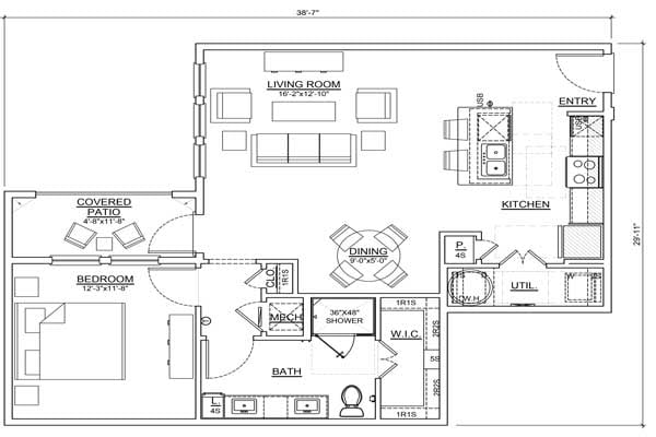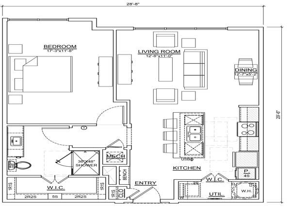 One Bedroom/One Bath - Plano 1 One Bedroom/One Bath