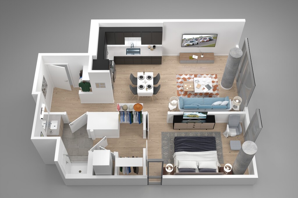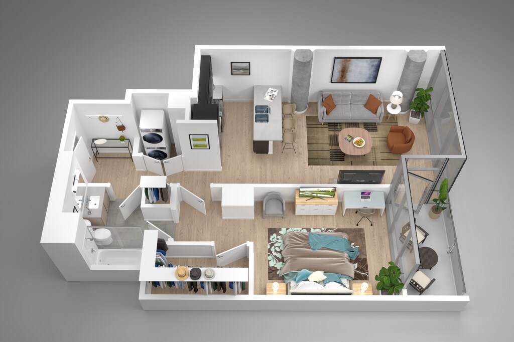 1 Dormitorio, 1 Baño, 741 pies²Disponible AhoraGalería del Modelo