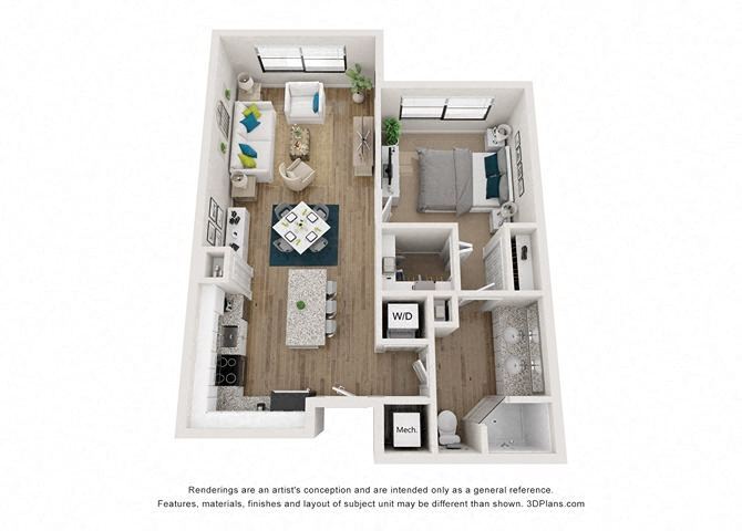 1 Dormitorio, 1 Baño, 842 pies²Disponible January 4, 2026El más grandeEsta opción tiene las unidades más grandes para este modeloGalería del Modelo