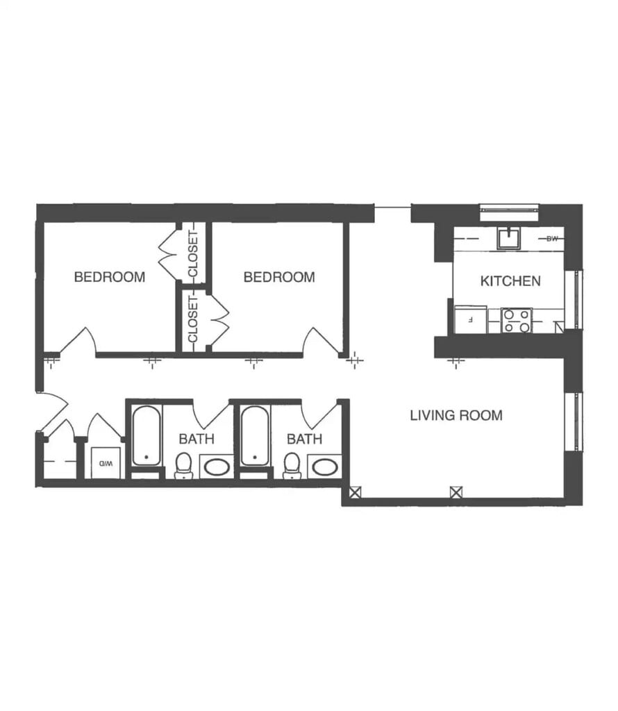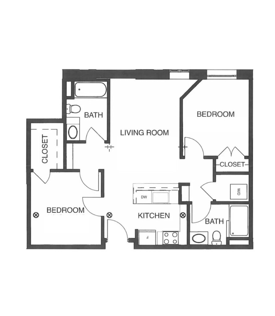 2 Dormitorios, 2 Baños, 1020 pies²El más grandeEsta opción tiene las unidades más grandes para este modeloGalería del Modelo