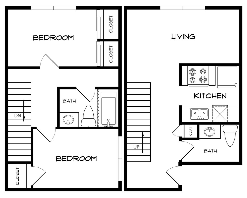Modelo de apartamento: B1Desde $1,1002 Dormitorios, 1 Baño, 922 sq ftDisponible Ahora![]()