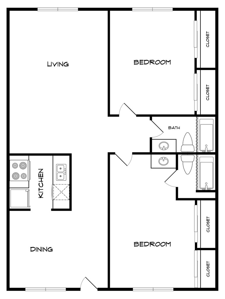 2 Dormitorios, 1 Baño, 922 pies²Disponible AhoraGalería del Modelo