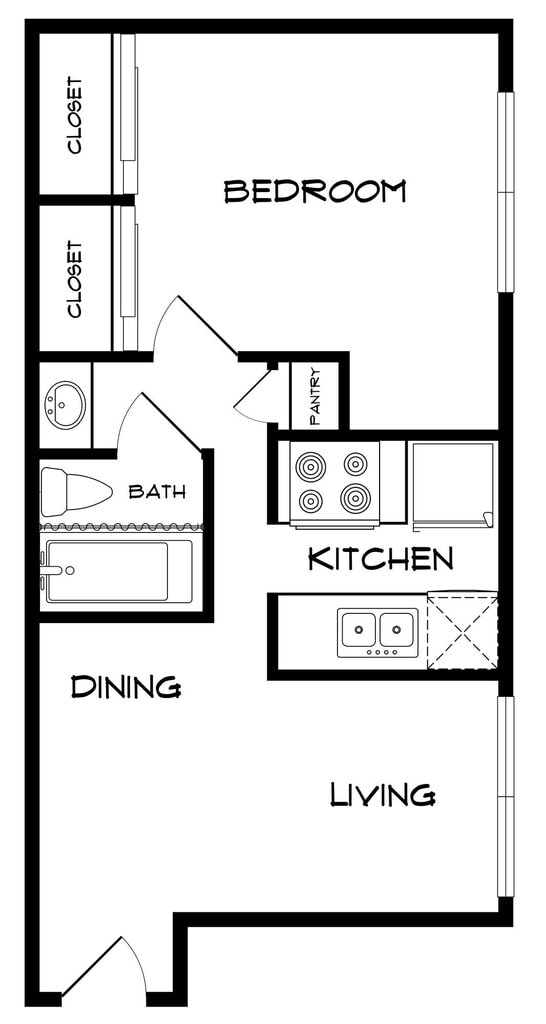 1 Dormitorio, 1 Baño, 660 pies²Disponible AhoraEl más grandeEsta opción tiene las unidades más grandes para este modeloGalería del Modelo