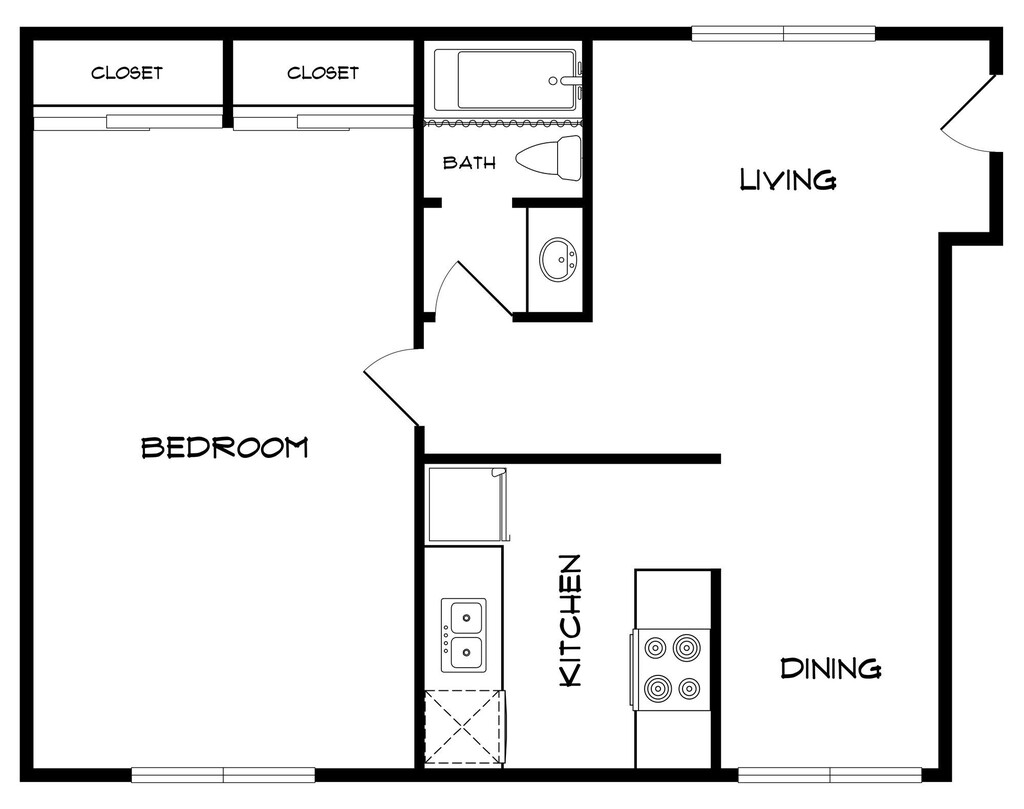 Modelo de apartamento: A2Desde $8401 Dormitorio, 1 Baño, 660 sq ftDisponible Ahora![]()