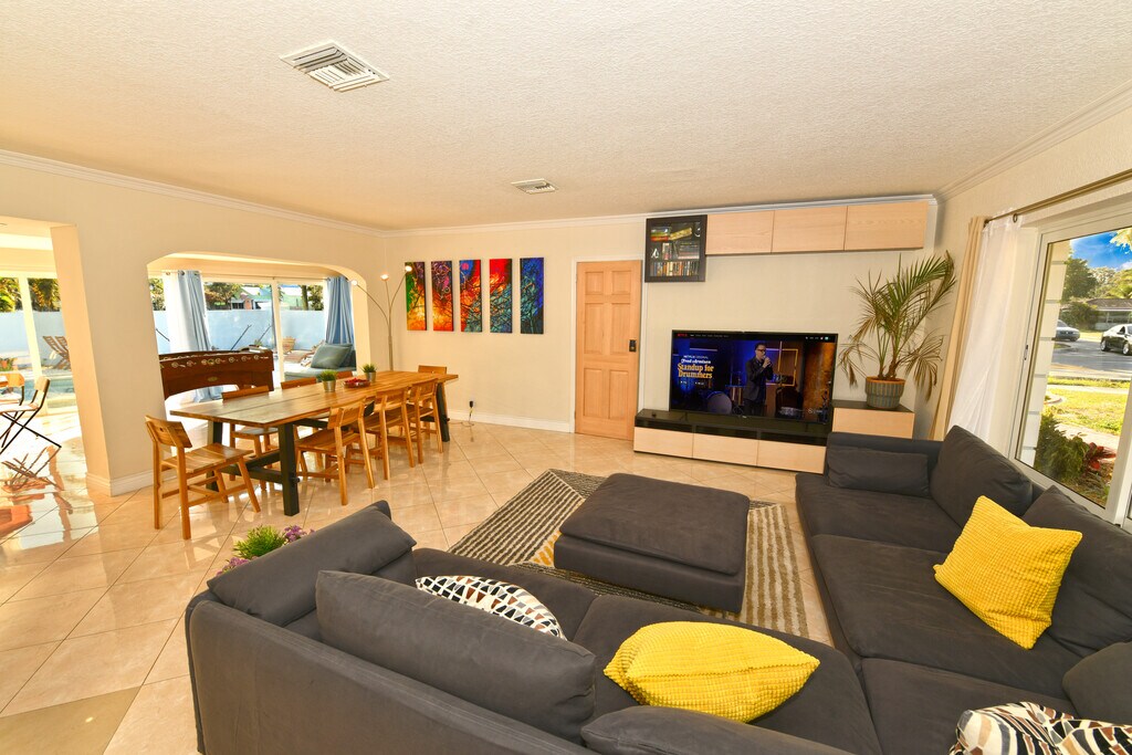 Este amplio y moderno apartamento cuenta con un lugar central en Pompano Beach. A 5 minutos de la playa más populares en Pompano, a 8 minutos hasta el Fort Lauderdale, a 3 minutos del supermercado, 6 minutos del teatro de comedor, 4 minutos de campos de golf, 4 minutos de la más grande, de Pompano Park, con muchas actividades para la familia, y aún a una poca distancia a pie de restaurantes y supermercados. Este REMODELADO 3 habitaciones y 1 baño la soleada ciudad de apartamento ofrece todo lo que necesitas mientras tú, tu familia y tus amigos relajarte y disfrutar de la vida en South Florida. El ambiente privado se destaca por el área de la piscina y en la cerca, para crear tu propio retiro privado. Hay una fantástica sala de juegos con futbolín y mesa de póquer, completamente equipado con cartas, papas fritas y dados, que se abre hacia el área de la piscina PRIVADO. Junto a la piscina CLIMATIZADA, es un brasero para cuando quiera disfrutar de contemplar las estrellas en las frías noches. El apartamento cuenta con una amplia sala de estar, muy amplia (y completamente equipadas) cocina, habitación principal y un sorprendente y área de la piscina privada. Cuenta con un amplio patio con piscina CLIMATIZADA (score!), somos solo un montón de sombrillas, sillones de jardín, una hamaca, una mesa de patio pequeño con asientos para que pueda disfrutar de tus comidas, mientras disfrutas del sol. GRATUITO, lavandería grande en el lugar (compartidos). DIverse ciudad con un ambiente para toda la familia. GRAN para familias o LOS COMPAÑEROS DE CUARTO que deseas un fantástico lugar para vivir con el doble de espacio a un precio asequible. Vive a lo grande en Pompano Beach. Esta es una pintoresca esquina de la Florida, conocida por tu cálida bienvenida, playas hermosas, y relajantes vecindarios. Lo mejor de todo lo que Fort Lauderdale (y de lo increíble vida nocturna) está a solo 5 minutos de distancia. Vivir en este apartamento te permitirá vivir en uno de los más acogedores, sun-shining lugares de los Estados Unidos.