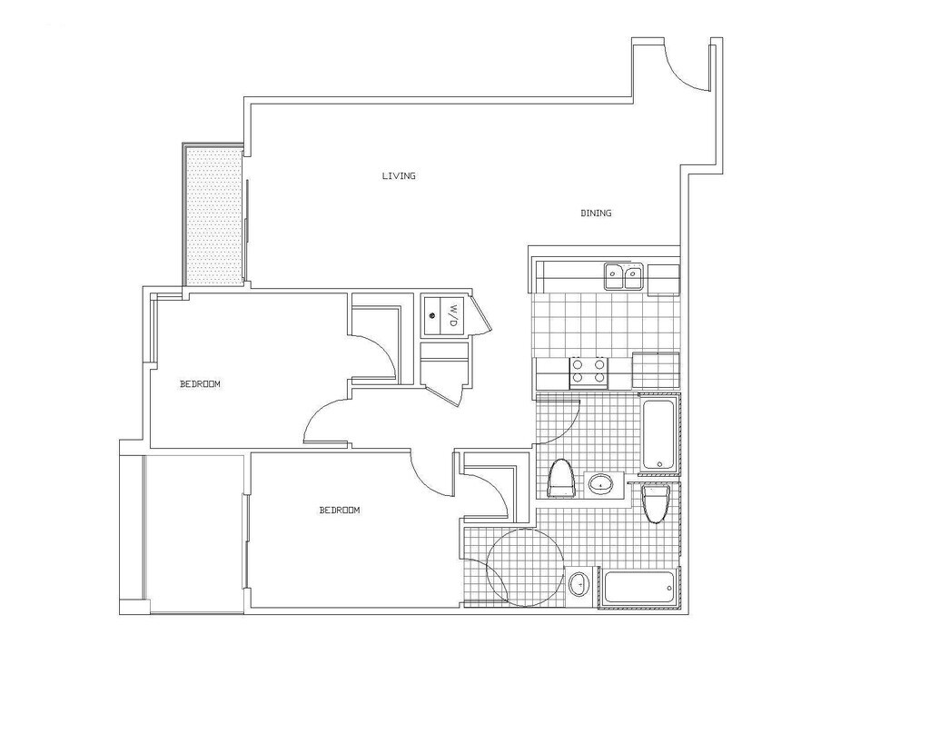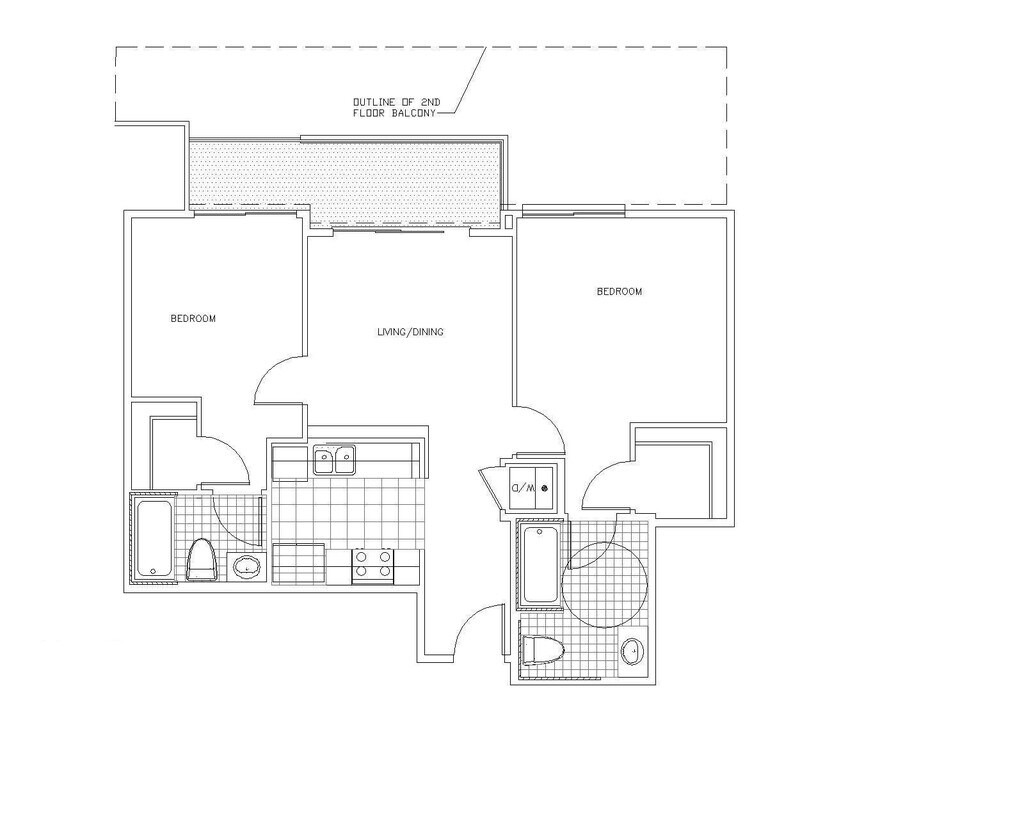 Revello 2x2 - Plano 1 Unidad de apartamento: RV203Modelo de apartamento: Revello 2x22 Dormitorios, 2 Baños, 1006 sq ftDisponible AhoraRevello 2x2