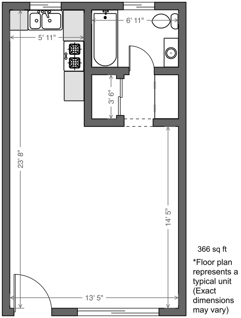 Estudio, 1 Baño, 375 pies²Disponible AhoraGalería del Modelo