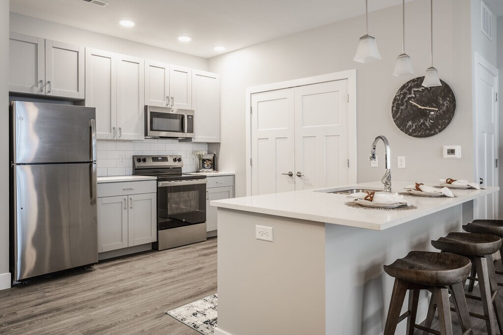 Promenade Flats offers luxury living on Evansville's East Side, conveniently located near I-69 and the Lloyd Expressway. Our spacious one-, two-, and three-bedroom apartments are thoughtfully designed with quality, comfort, and convenience in mind. Each unit features stainless steel appliances, full-size in-unit washers and dryers, and private balconies or patios. Residents can enjoy community amenities such as a saltwater pool, 24-hour fitness center, aqua lounge, and an off-leash pet park. Situated near Green River Road and Eastland Mall, Promenade Flats provides easy access to shopping, dining, and entertainment options right outside your doorstep.