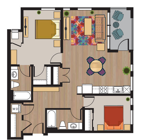 Modelo de apartamento: Two Bedroom2 Dormitorios, 2 Baños, 1080-1090 sq ftDisponible AhoraPlanosFotos![]()