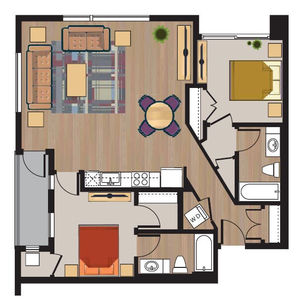 Modelo de apartamento: Loft2 Dormitorios, 2 Baños, 1014 sq ftDisponible Ahora![]()