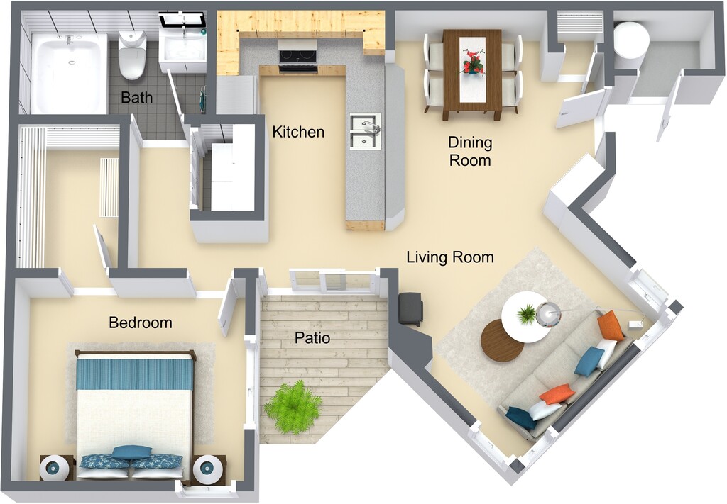 1 Dormitorio, 1 Baño, 765 pies²Precio Mensual TotalDisponible Feb 13Galería del Modelo