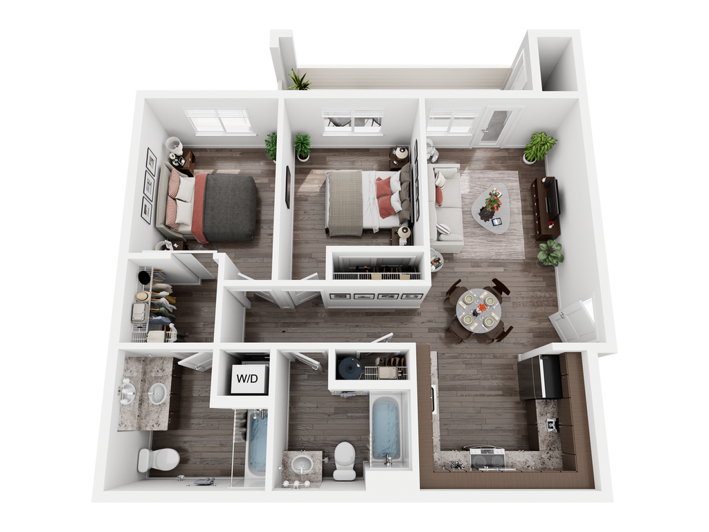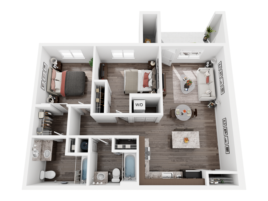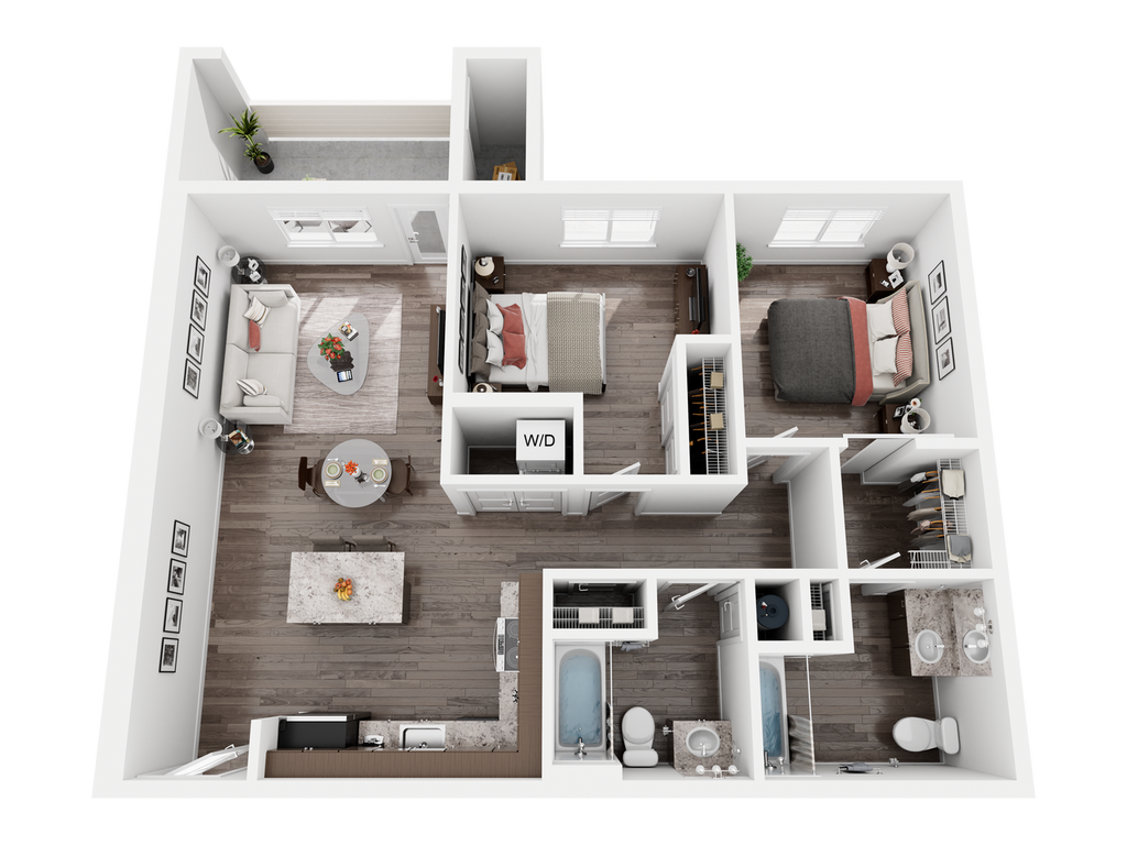 2 Dormitorios, 2 Baños, 1063 pies²El más grandeEsta opción tiene las unidades más grandes para este modeloGalería del Modelo
