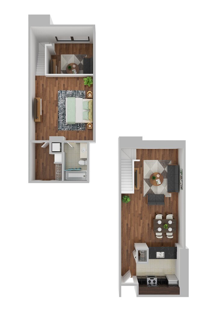 Modelo de apartamento: Jr. 1 Bed 1 Bath Bi-Level with Loft ADesde $1,8991 Dormitorio, 1 Baño, 675-710 sq ftDisponible Ahora![]()