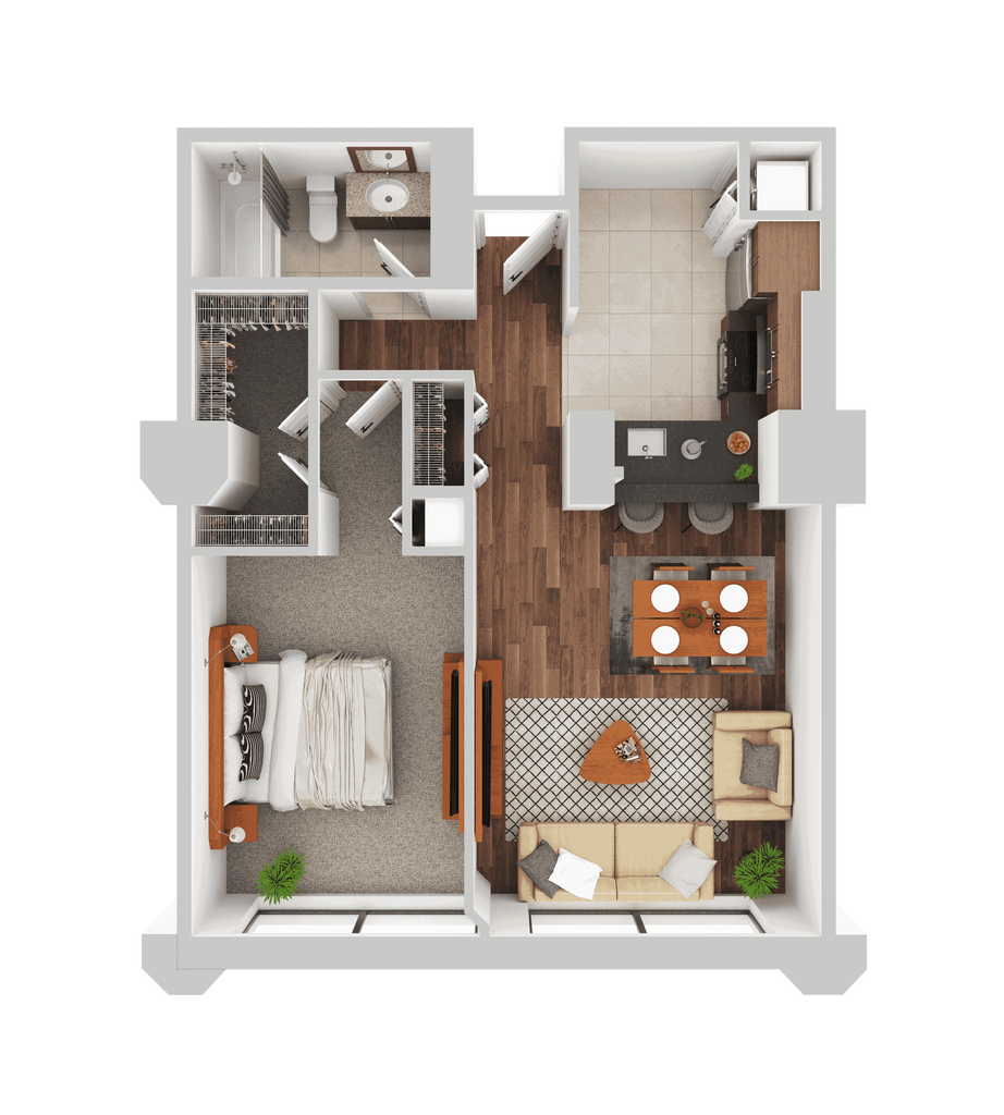 1 Dormitorio, 1 Baño, 720 pies²Disponible February 10, 2026Galería del Modelo