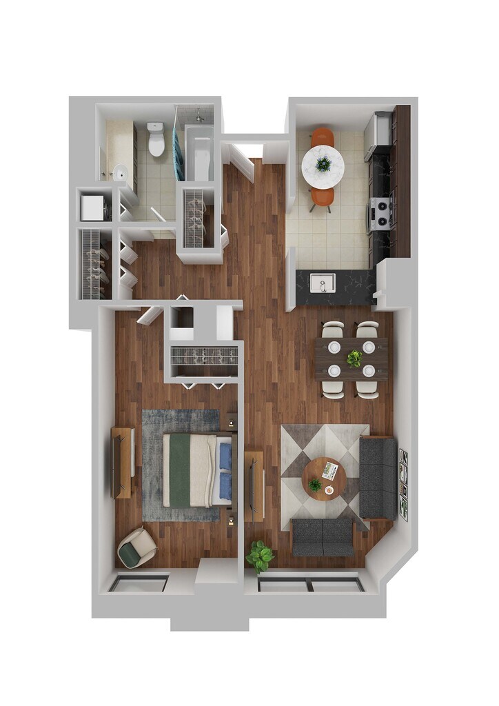 1 Dormitorio, 1 Baño, 705 pies²Disponible AhoraGalería del Modelo