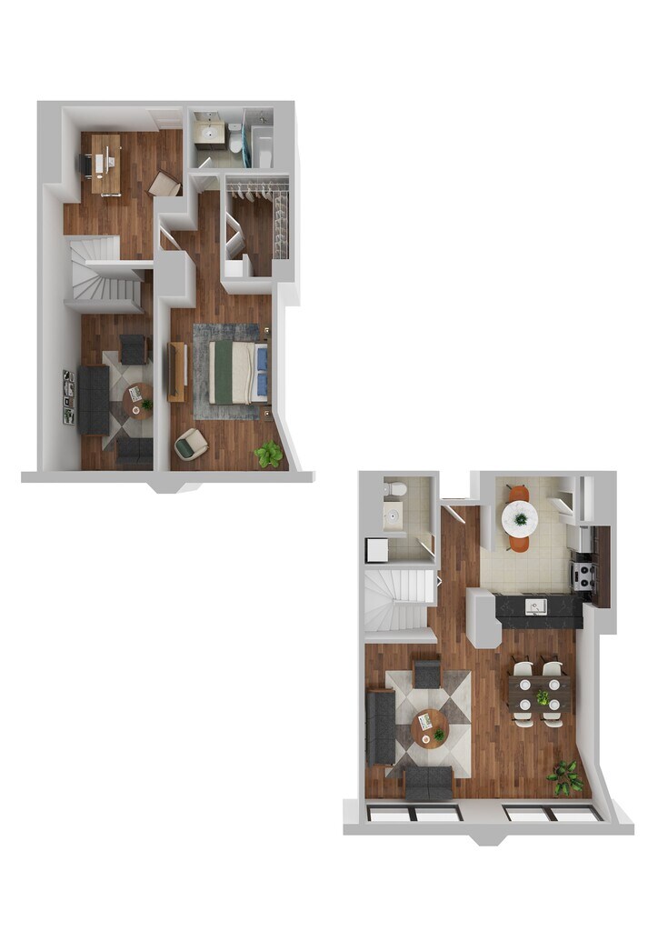 Modelo de apartamento: 1 Bed 1 Bath Bi-Level with Loft BLlame para Precios1 Dormitorio, 1 Baño, 775 sq ftNo Disponible1 Bed 1 Bath Bi-Level with Loft B - Plano 1 1 Bed 1 Bath Bi-Level with Loft C