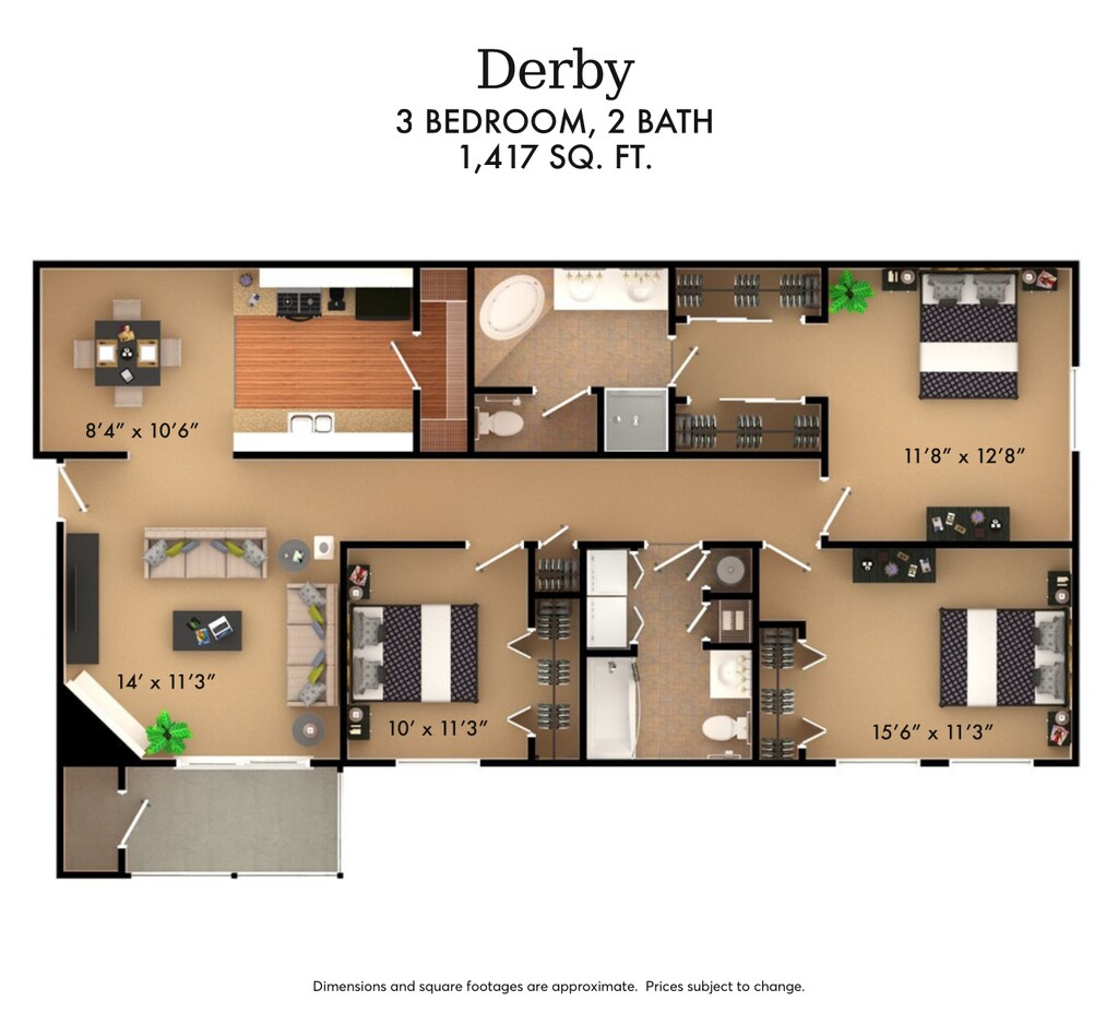Modelo de apartamento: Derby3 Dormitorios, 2 Baños, 1417 sq ftDisponible December 8, 2025PlanosFotosDerby - Imagen 1 Derby - Imagen 2 Derby - Plano 3 Unidad de apartamento: 9021Modelo de apartamento: Derby3 Dormitorios, 2 Baños, 1417 sq ftDisponible December 8, 2025