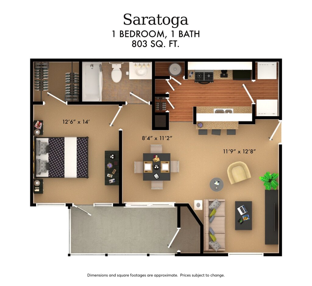 1 Dormitorio, 1 Baño, 803 pies²Disponible AhoraGalería del Modelo
