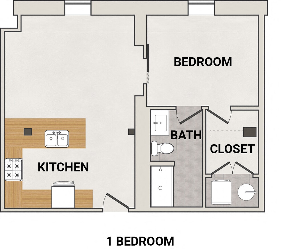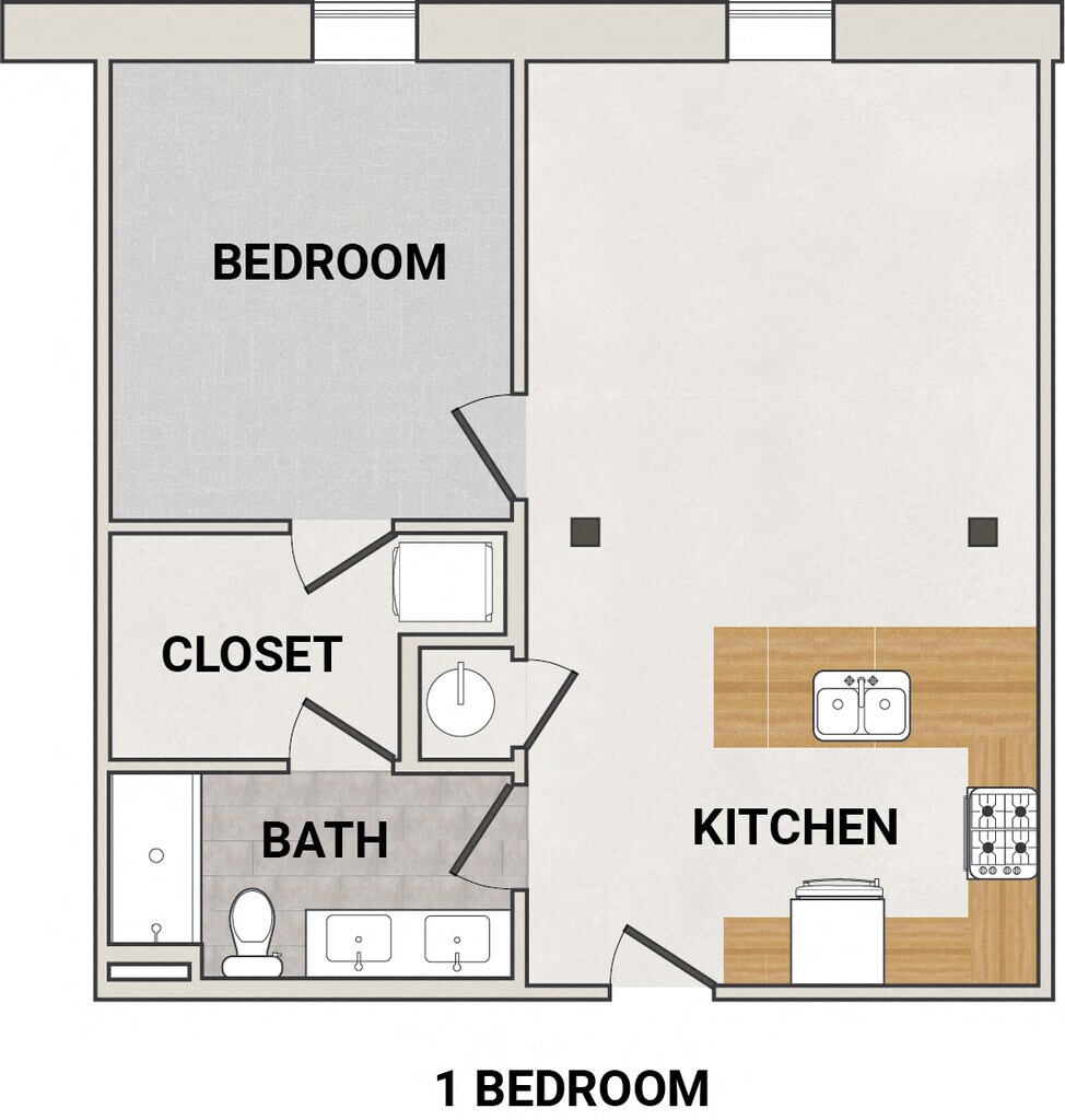 1 Dormitorio, 1 Baño, 705 pies²Disponible AhoraGalería del Modelo