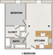 1 Bedroom - 1 Bathroom - Plano 1 ![]()