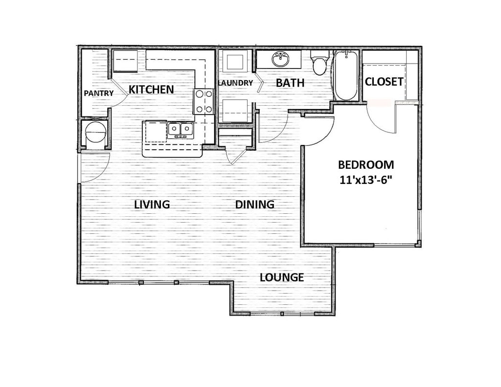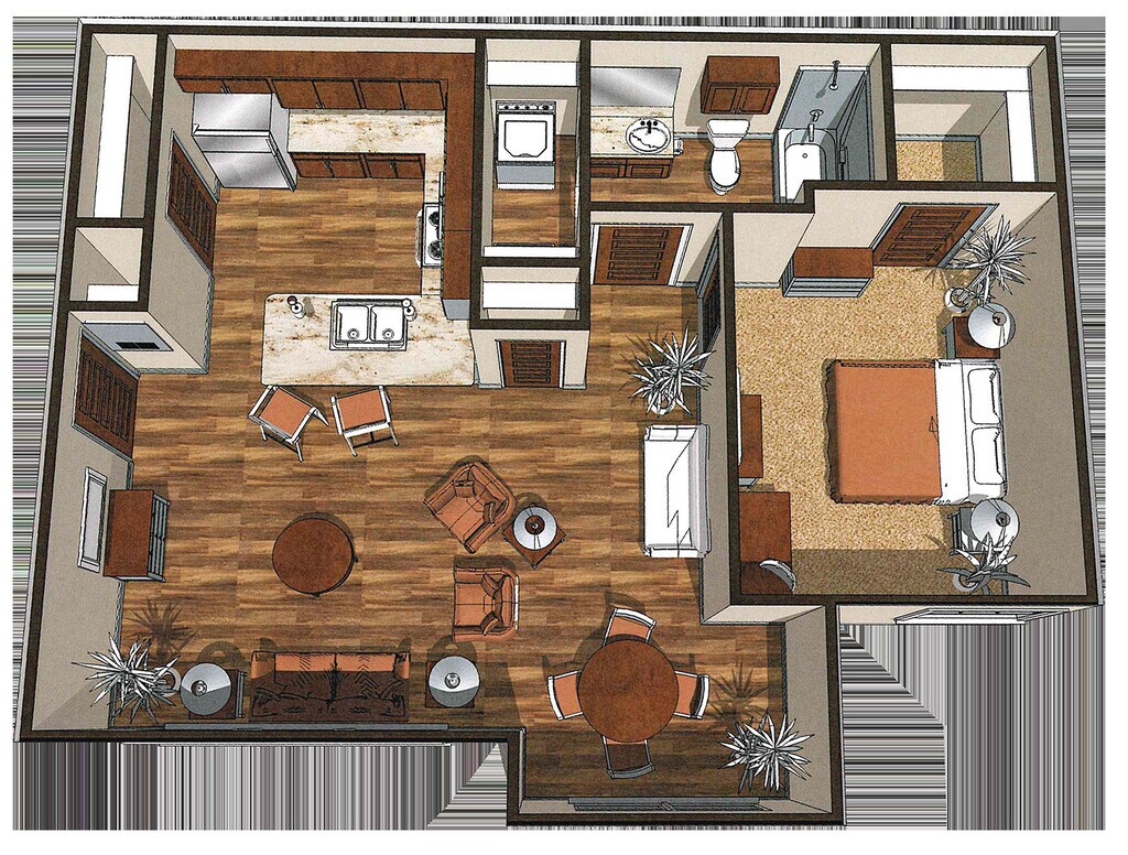 1 Dormitorio, 1 Baño, 713 pies²Disponible AhoraGalería del Modelo