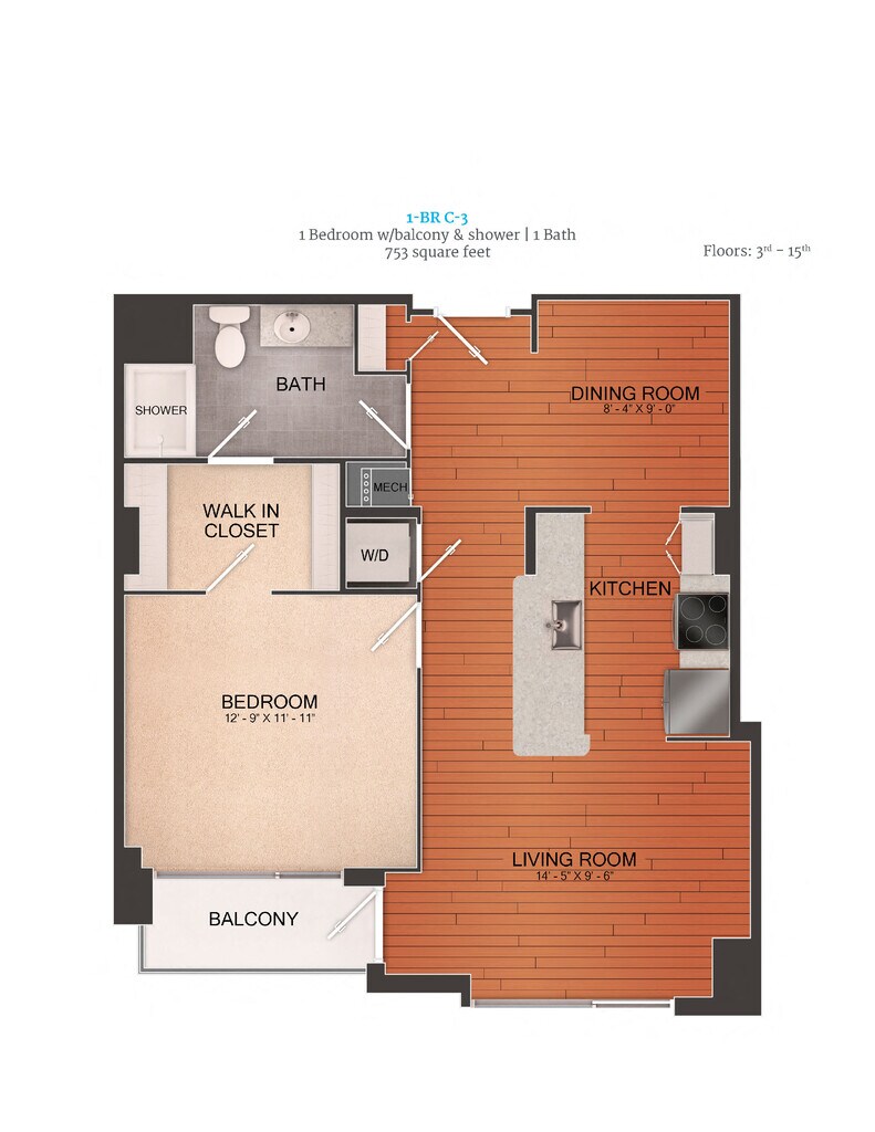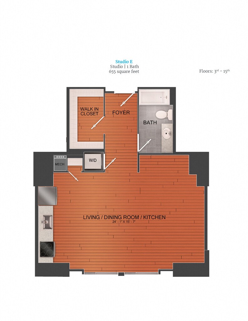 Studio - Plano 4 Unidad de apartamento: 1-1209Modelo de apartamento: Studio$1,941Estudio, 1 Baño, 655 sq ftDisponible March 4, 2026![]()
