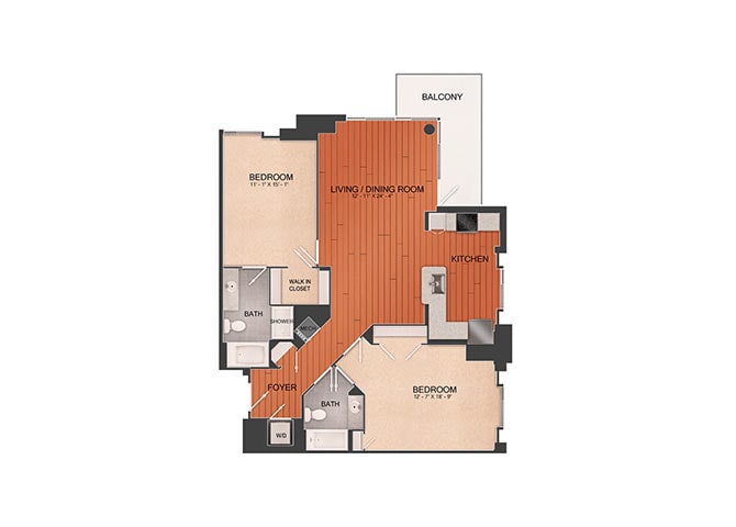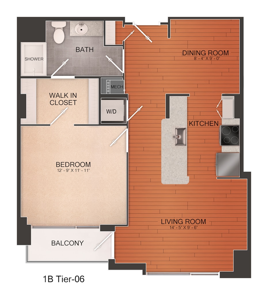 1 Dormitorio, 1 Baño, 618-890 pies²Disponible AhoraGalería del Modelo