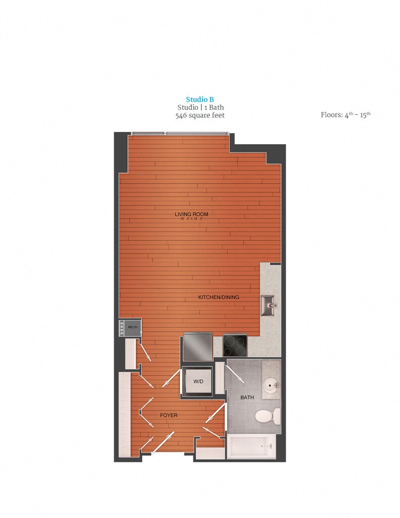 Studio - Plano 4 Unidad de apartamento: 1-0519Modelo de apartamento: Studio$1,815Estudio, 1 Baño, 546 sq ftDisponible Ahora![]()