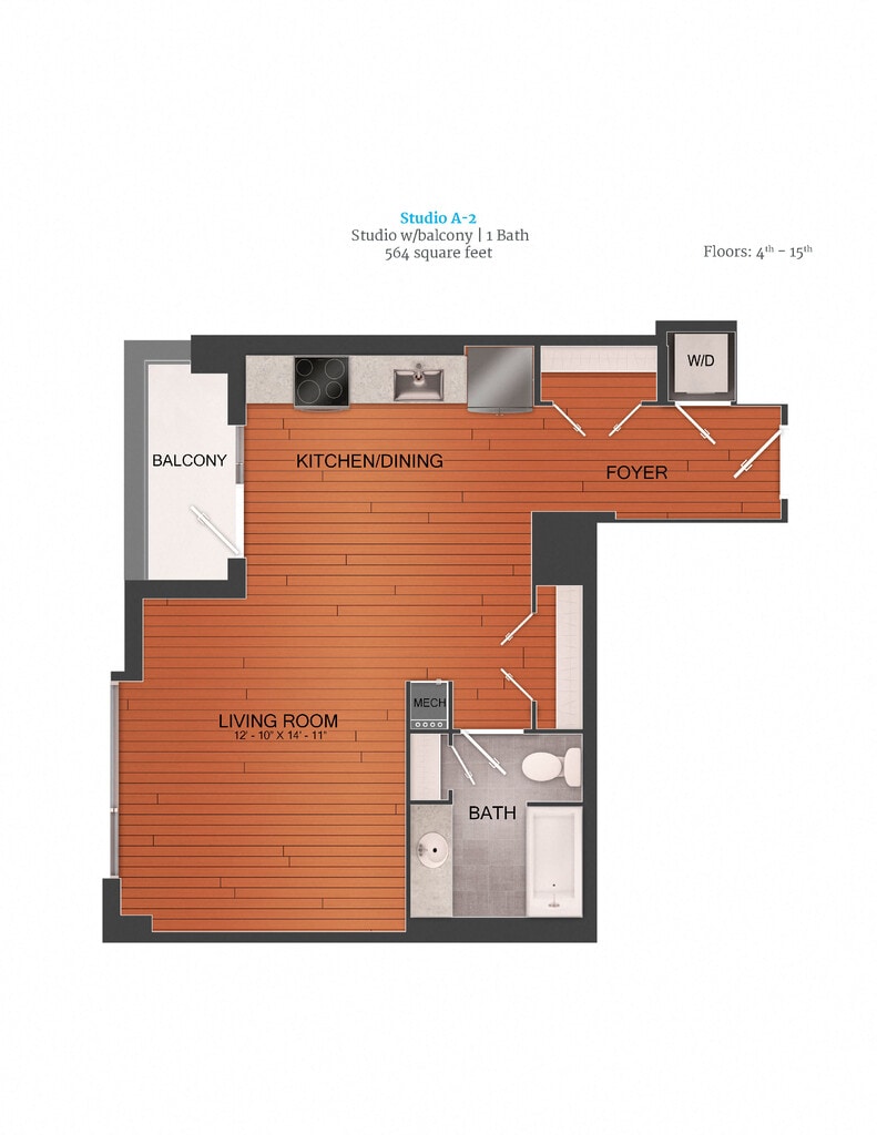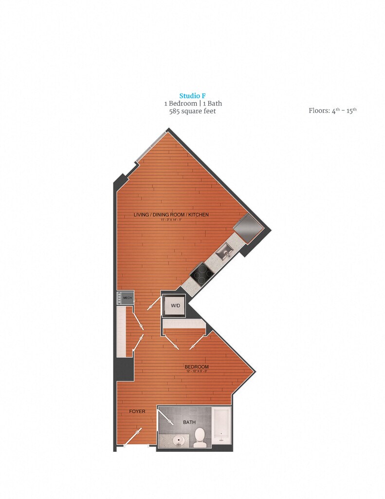 Studio - Plano 4 Unidad de apartamento: 1-0518Modelo de apartamento: Studio$1,910Estudio, 1 Baño, 585 sq ftDisponible April 13, 2026![]()