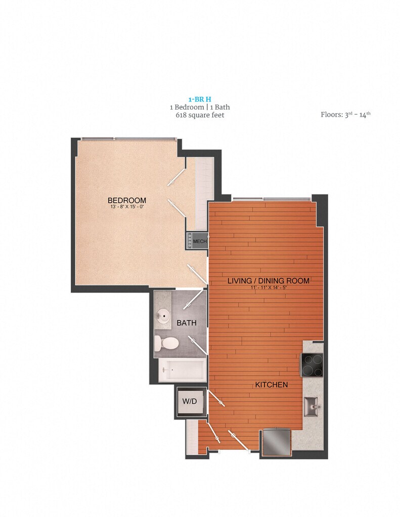 1 Dormitorio, 1 Baño, 618-890 pies²Disponible Mar 14Galería del Modelo
