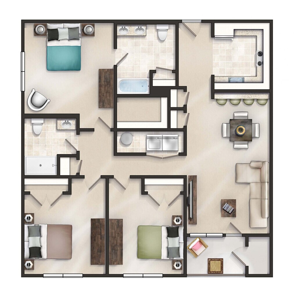 3 Dormitorios, 2 Baños, 1295 pies²Disponible AhoraGalería del Modelo