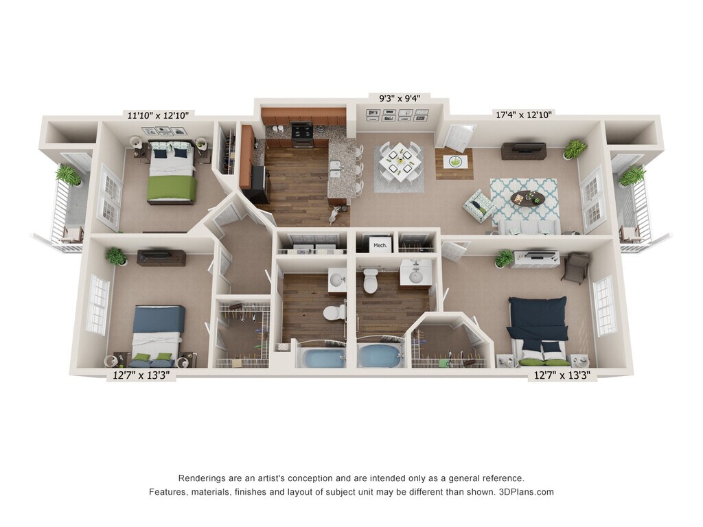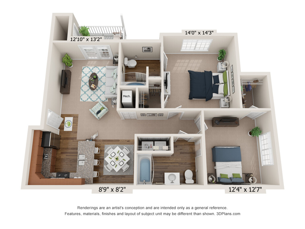 1 Dormitorio, 1 Baño, 759 pies²Disponible AhoraGalería del Modelo
