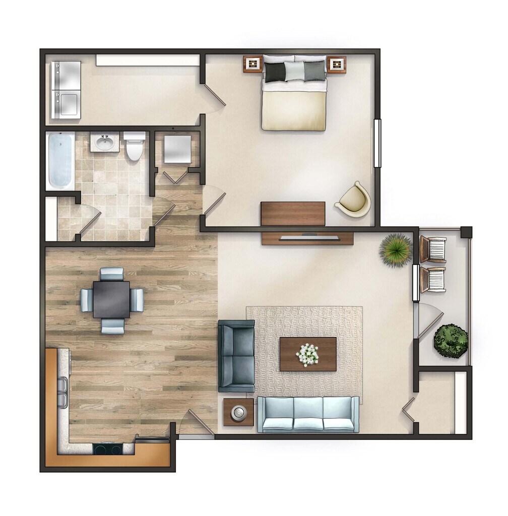 1 Dormitorio, 1 Baño, 749 pies²Disponible AhoraGalería del Modelo