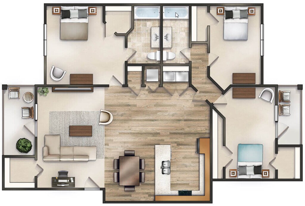 Modelo de apartamento: The LaurelDesde $1,3752 Dormitorios, 2 Baños, 1117 sq ftDisponible AhoraPlanosFotos![]()