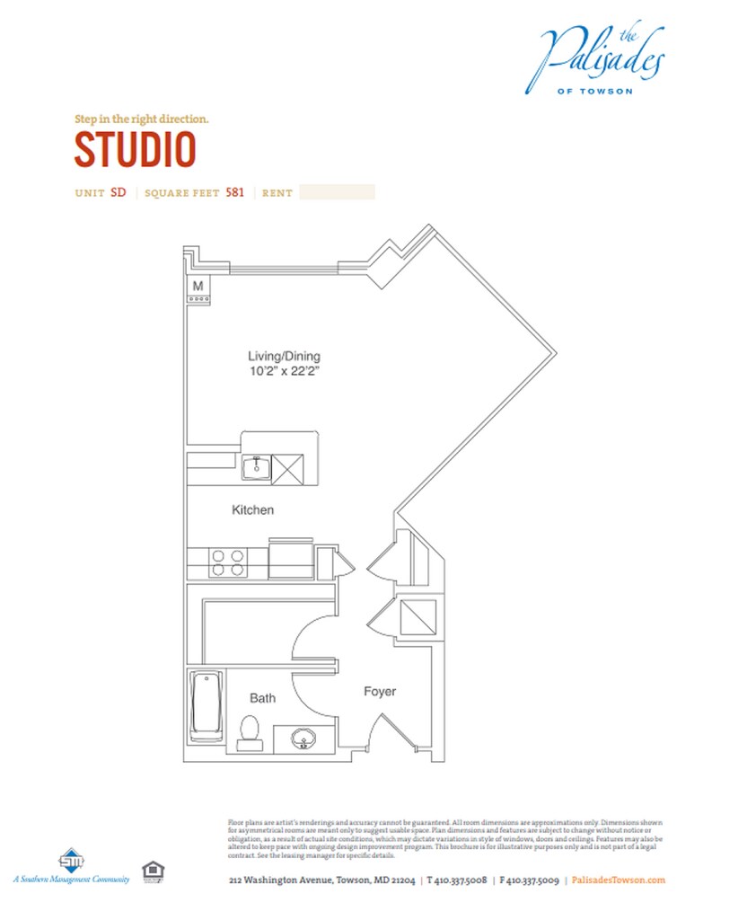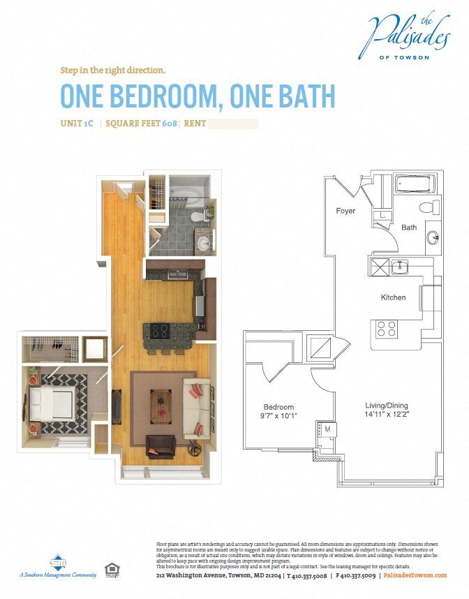 Palisades of Towson ofrece apartamentos de Estudio a 2 Dormitorios desde $1,558 con 401–1,358 pies cuadrados. Aquí está el precio actual y la disponibilidad: