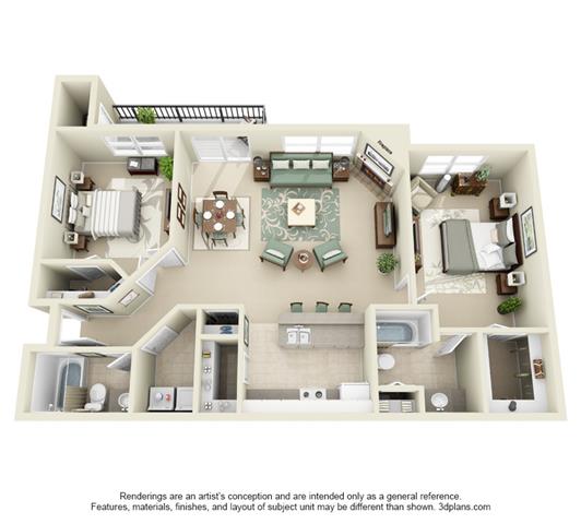 1 Dormitorio, 1 Baño, 755 pies²Disponible AhoraGalería del Modelo