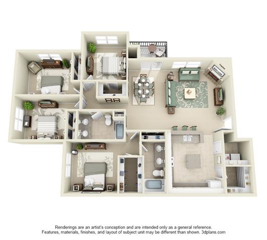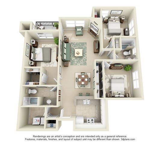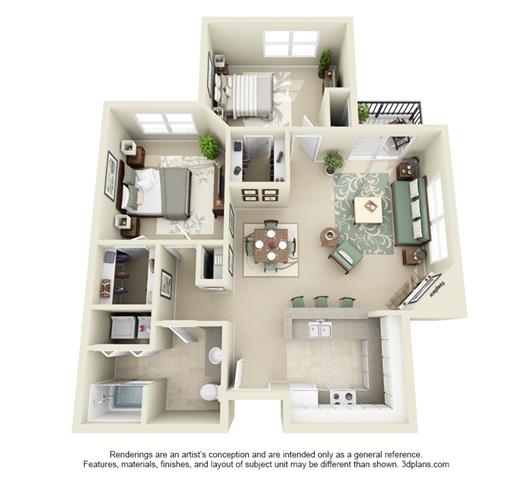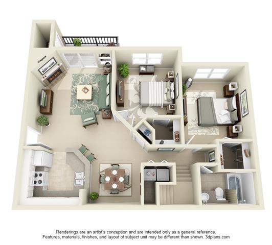 Modelo de apartamento: TamarackDesde $1,5781 Dormitorio, 1 Baño, 755 sq ftDisponible Ahora![]()
