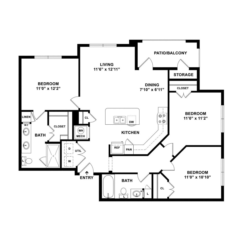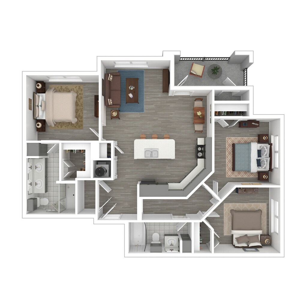 Modelo de apartamento: C1Desde $1,3033 Dormitorios, 2 Baños, 1164 sq ftDisponible Ahora![]()