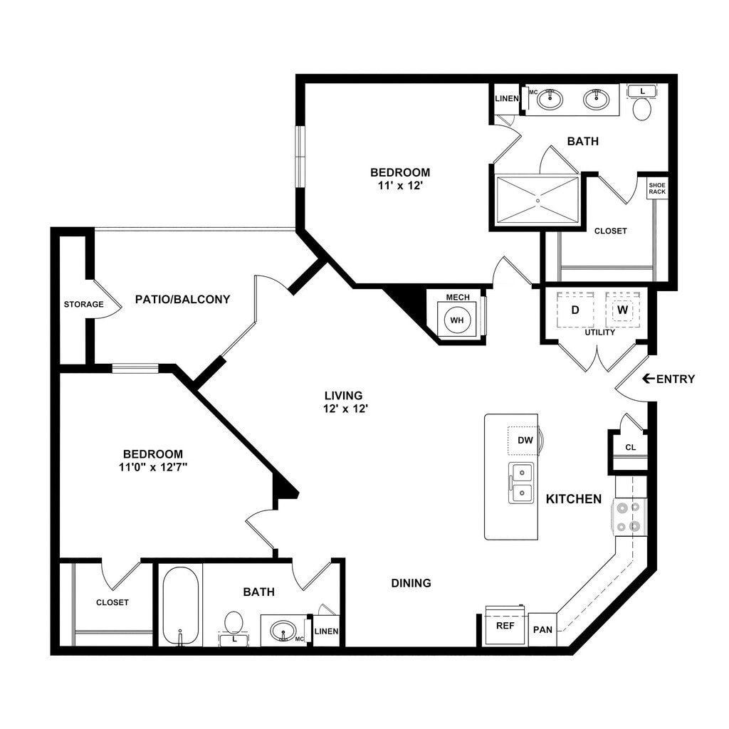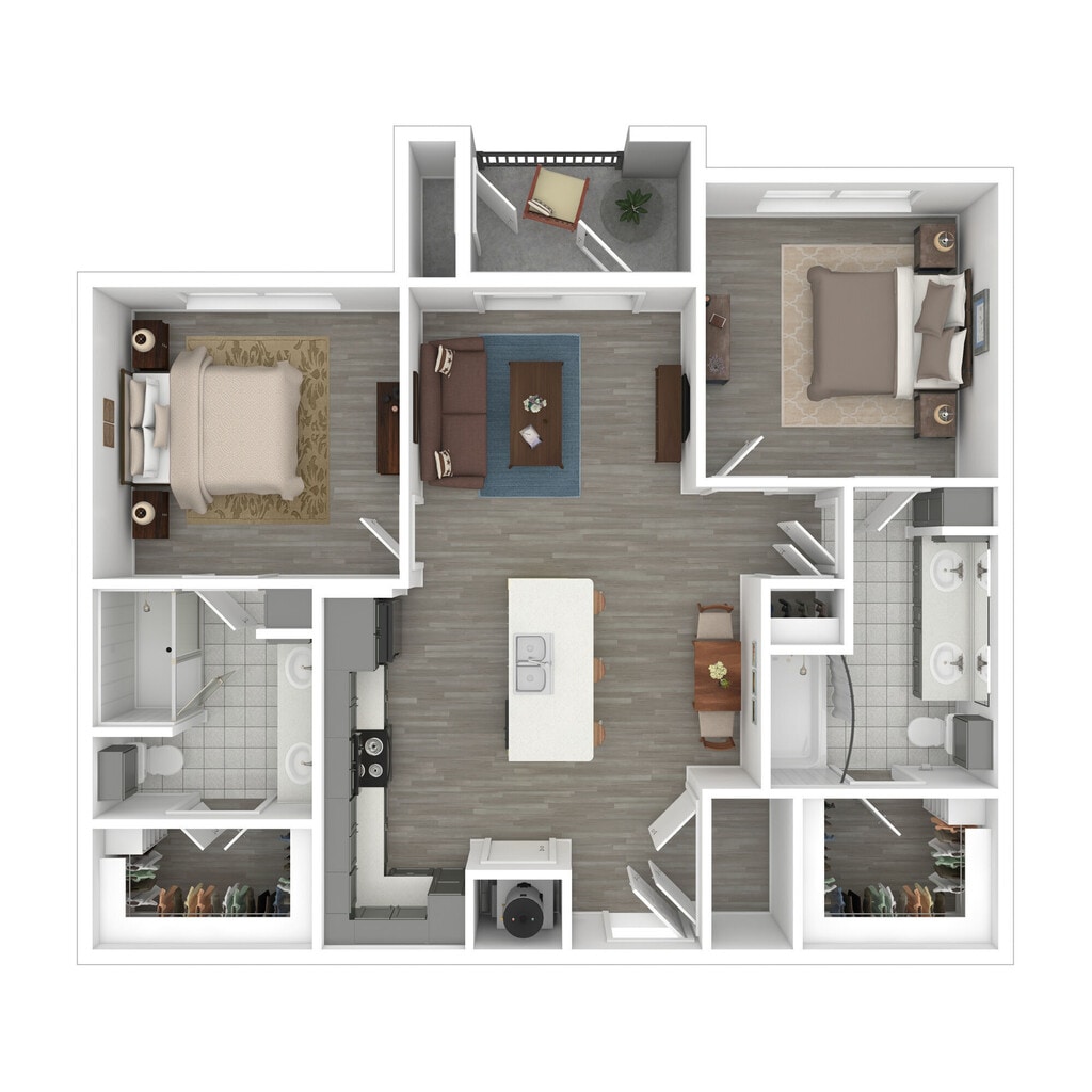 Modelo de apartamento: B2Desde $1,0312 Dormitorios, 2 Baños, 1005 sq ftDisponible Ahora![]()