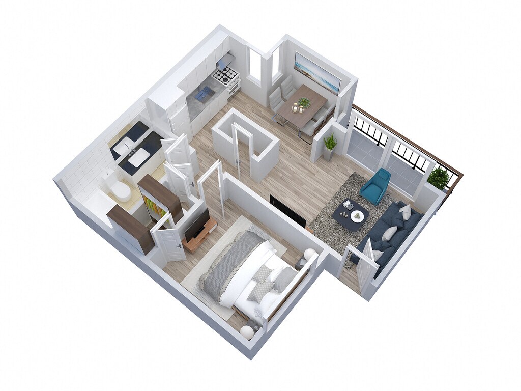 Modelo de apartamento: KentDesde $1,1001 Dormitorio, 1 Baño, 523 sq ftDisponible February 7, 2026PlanosFotos![]()