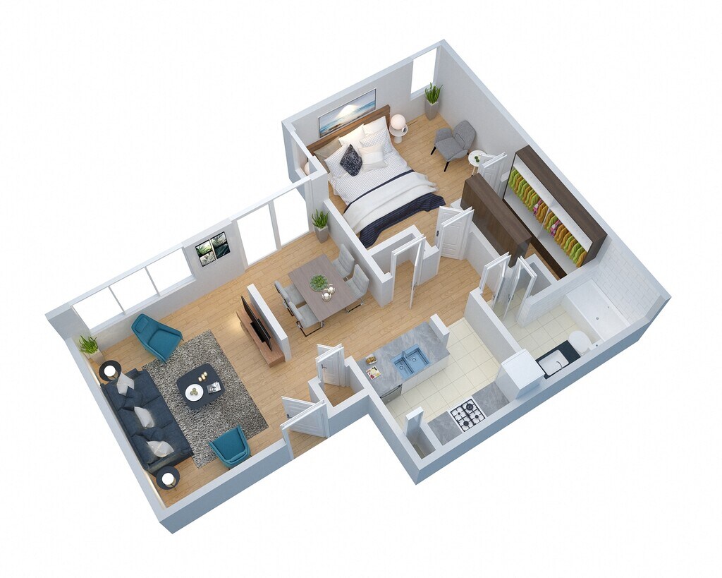 1 Dormitorio, 1 Baño, 523 pies²Disponible February 7, 2026Galería del Modelo