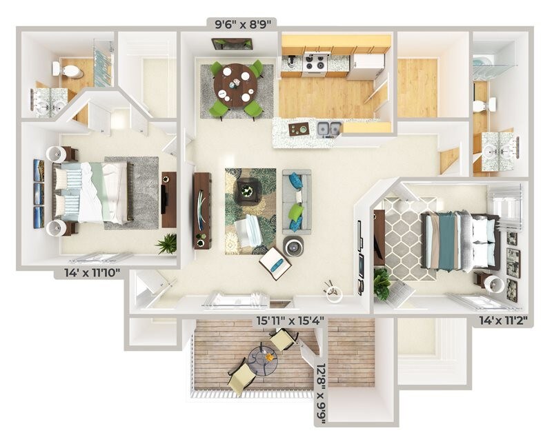 2 Dormitorios, 2 Baños, 1109 pies²Disponible AhoraGalería del Modelo