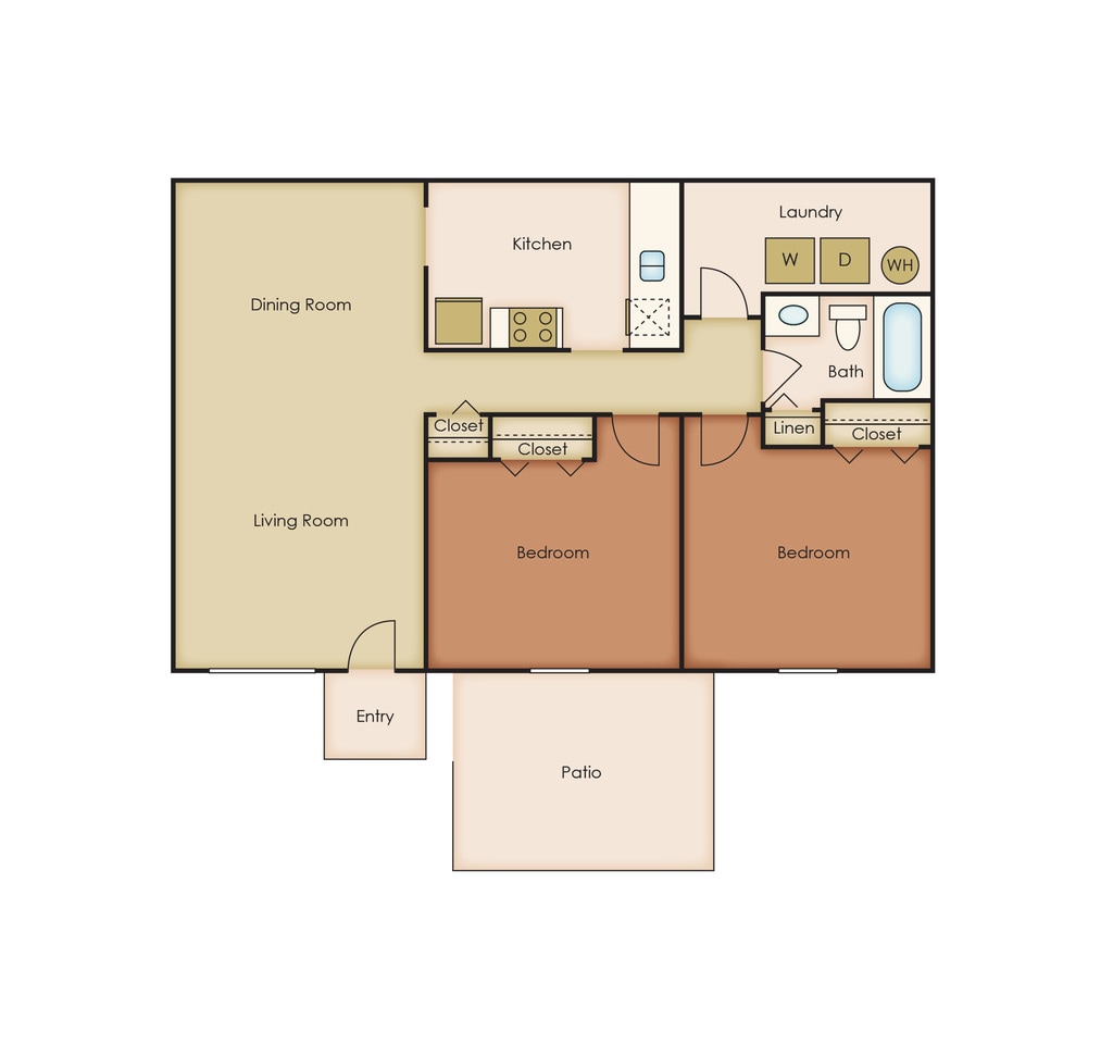 2 Dormitorios, 1 Baño, 900 pies²Galería del Modelo
